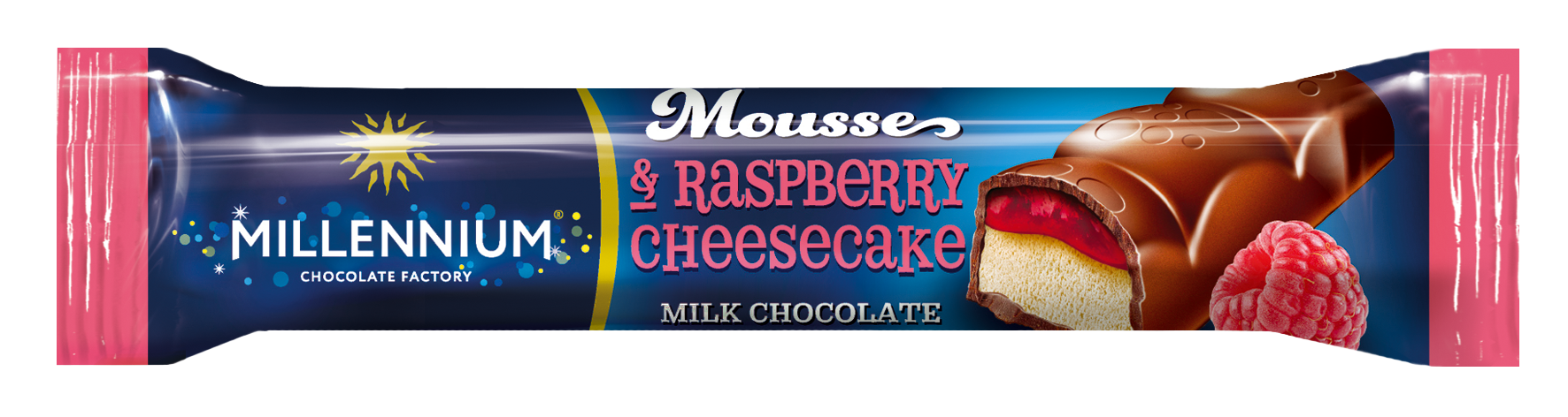 Шоколад Millennium Mousse молочний — з мусовою та полуничною начинкою